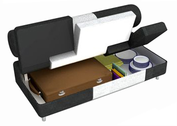 Софа модели Safo, являясь сама по себе компактной, удобной, стильной и отличаясь классическими формами с идеальными пропорциями, позволяет хранить в себе также множество мелких и крупных вещей.