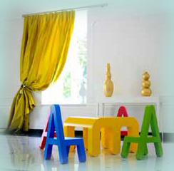 Серия детской мебели-алфавита Letters Furniture не только удобна, красива и безопасна, но еще и способна помочь детишкам быстро и легко освоить алфавит. Все стулья, столы, диванчики и полочки представлены в виде красочных, ярких буков, которыми приятно и полезно будет украсить помещения детских садов, школьных групп продленного дня и другие детские комнаты. А на некоторых из таких буков можно будет даже весело поиграть. Например, буква «С» представлена в виде забавной качели.