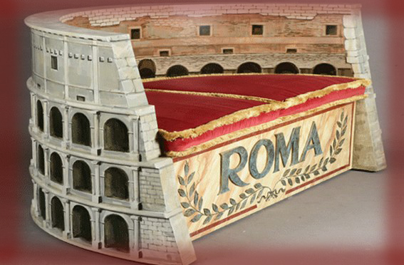 Диван Colosseum Sofa, как две капли воды, похож на главную гордость римлян, да и всех итальянцев - Колизей. Талантливейший дизайнер Родольфо Роккьетти (Rodolfo Rocchetti), также являющийся специалистом по обивочным материалам, приложил максимум усилий, чтоб конструкция дивана, как и его обивка, полностью повторяла все очертания и черты этой великой исторической достопримечательности.