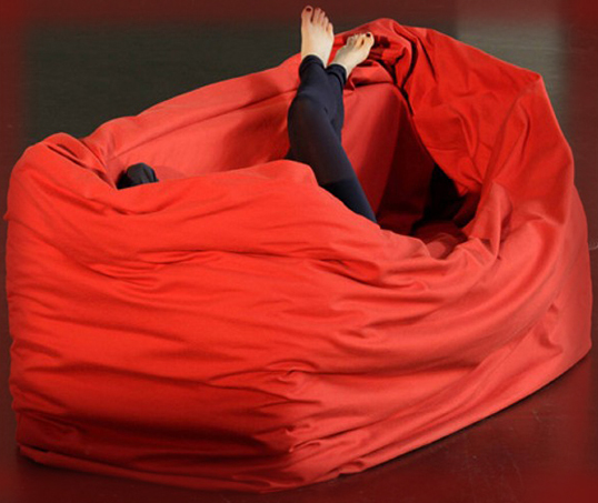 Из мягкого и приятного на ощупь текстильного покрытия можно формировать место для отдыха по своему настроению. Хочется тишины и покоя – можно спрятаться под покрытие, как под одеяло, или даже сформировать из него защитный кокон, норку. Хочется пространства и заметности - можно максимально расправить покрытие и получить обычный удобный диван. Хочется посидеть на полу перед телевизором – можно покрытие мягкой подушкой уложить у подножья дивана и усесться на него, опершись на сиденье. В общем, можно получить из дивана Moody Couch то, что в данный момент угодно душе!