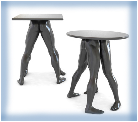 Мастера представили публике забавную и вызывающую коллекцию мебели Human Furniture Collection. Все предметы мебели этой коллекции больше походят на скульптуры, имеющие не только художественную, но и чисто практическую ценность. Причем скульптуры мужчин, выполненные с анатомической точностью, как бы прячутся за предметами мебели от ревнивых взглядов обманутых мужей.