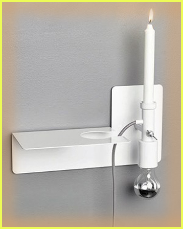 Конструкцию полки-светильника «Sunday Lamp» можно переворачивать, что называется, с ног на голову, включая электрическую лампу или зажигая восковую свечу. А сама полочка устроена так, что на нее можно положить и пару книг, и поставить чашечку чая в специально сделанную выемку.