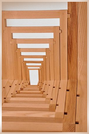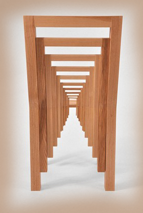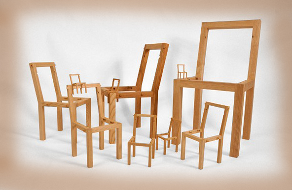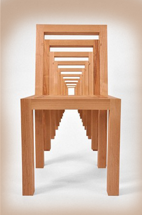 В собранном виде стул принципиально не отличается от привычных нам вариантов, однако, если посмотреть строго спереди или сзади, то можно увидеть перспективу – уходящую вдаль дорогу, обрамленную колоннами. В разобранном виде владелец такого стула будет иметь на руках множество каркасов стульев мал-мала-меньше, у которых отсутствует сидение. Складывая, как матрешку, каждый меньший такой каркас в больший, в результате получаешь подходящий для сидения стул «Inception Chair».