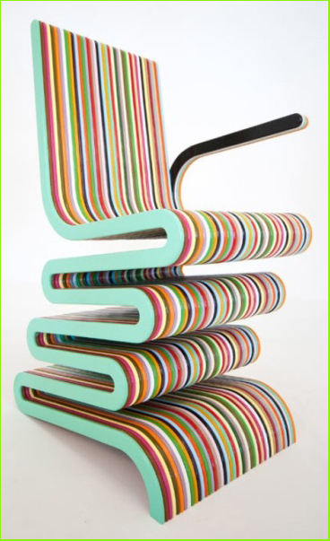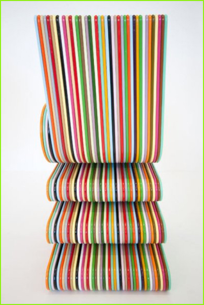Весёлый жизнерадостный дизайн стула Colorful Striped Chair – творение британского дизайнера Anthony Hartley – Энтони Хартли. Модель выполнена из наборного бука. А многоцветная палитра Colorful Striped Chair, напоминающего огромную яркую конфету, - результат покрытия цветным лаком.