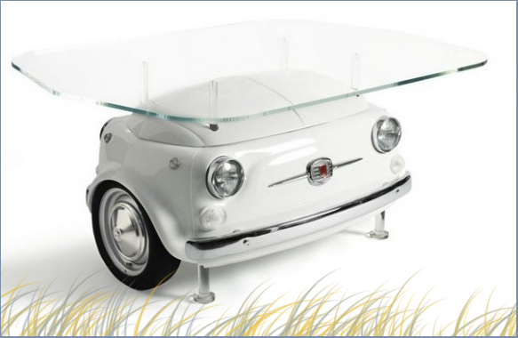 Согласитесь, что стол, ножка которого сделана из части уменьшенного автомобильного кузова, смотрится достаточно оригинально, но это больше элитный арт-объект, чем мебель для повседневного использования.