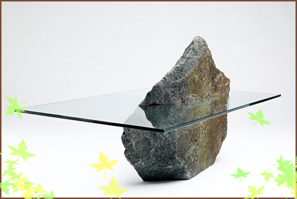 Каменный «айсберг», который возвышается над хрупкой столешницей, сделанной из прозрачного стекла, выглядит сурово и внушительно, и переместить его на другое место вряд ли так просто. Кроме всего этого, создается неизменное впечатление, что стеклянную столешницу какие-то неведомые силы природы просто нанизали на кусочек «огромной» скалы, и это придает мебели неповторимое очарование.
