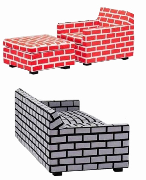 Обивка мебели представляет собой «кирпичную кладку», которая может быть выполнена в различной цветовой гамме. Хотя данная коллекция и кажется неудобной, на самом деле отдыхать на ее диване и креслах – настоящее удовольствие.