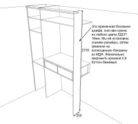 Шкаф встроенный, у него нет задней стенки, пола и потолка.