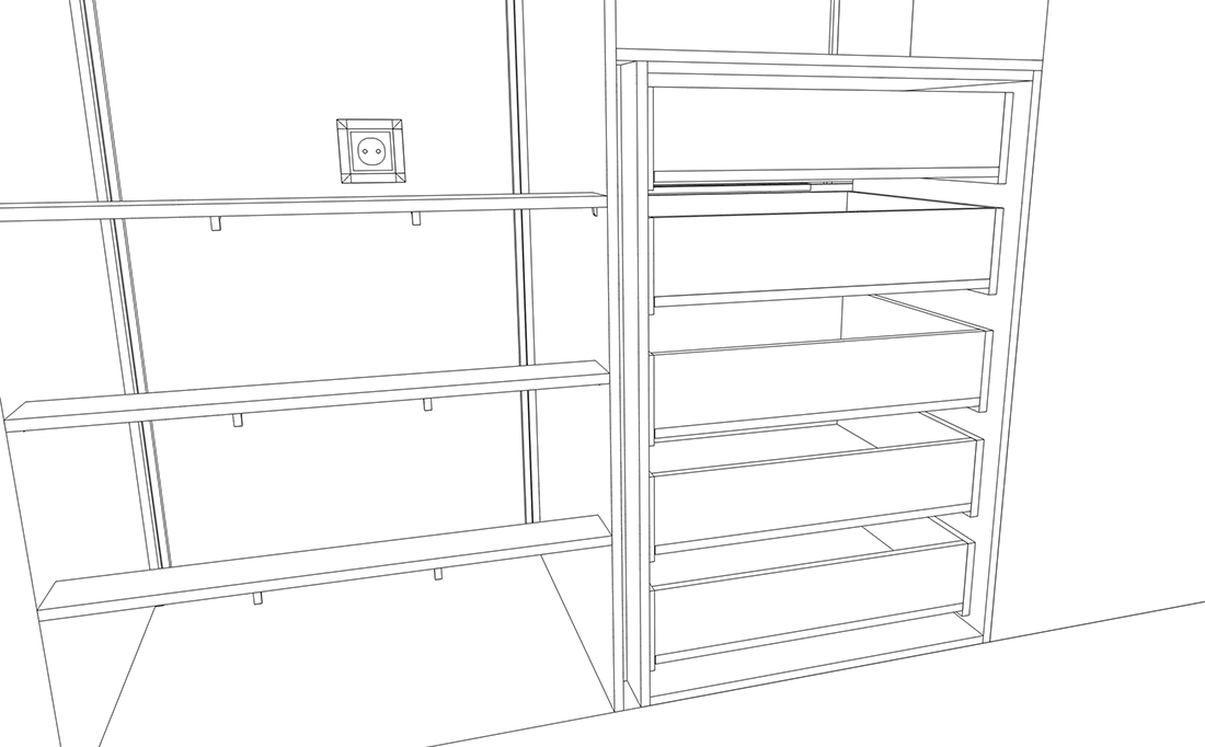 Мы сделали несколько набросков будущего шкафа. Поэкспериментировали с вариантами дверей, ручек и общего оформления — и предложили Ирине разные решения.