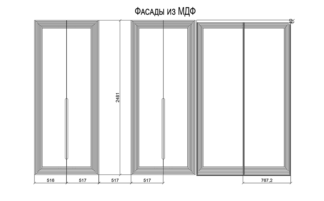 Двери выполнили из МДФ толщиной 19 мм — это позволило сделать фрезеровку глубиной 3 мм.