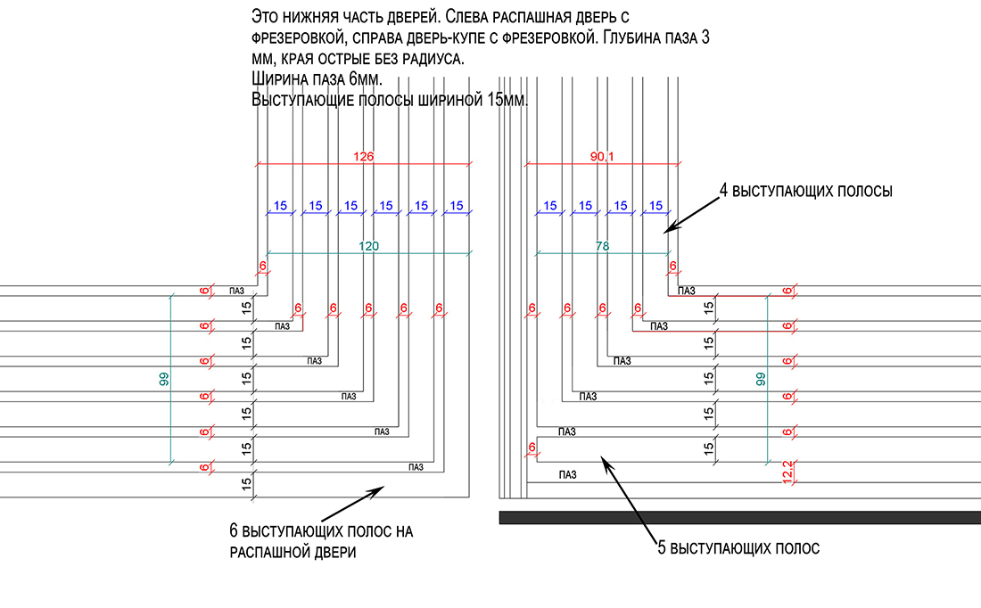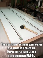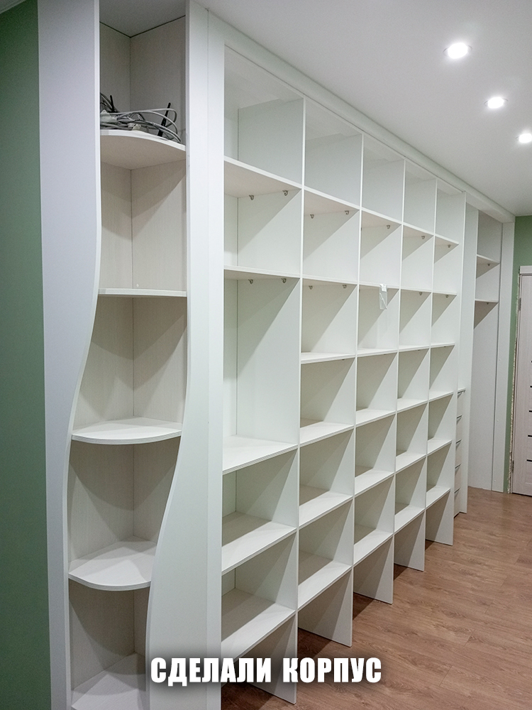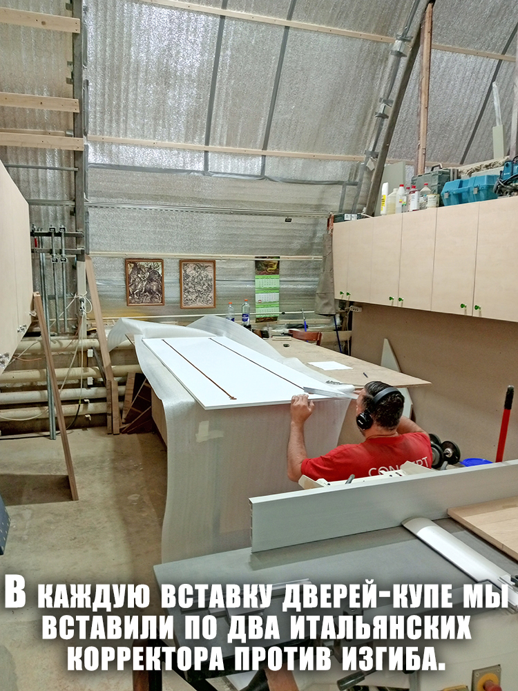 Когда корпуса были готовы, сняли размеры для изготовления распашных дверей и дверей‑купе.