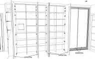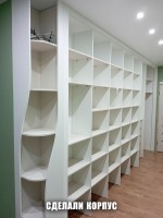 Сначала изготовили каркасы и секции шкафов. Поскольку шкафы встроенные, у них нет пола, потолка и задних стенок. Многие детали подгоняли под неровности стен.