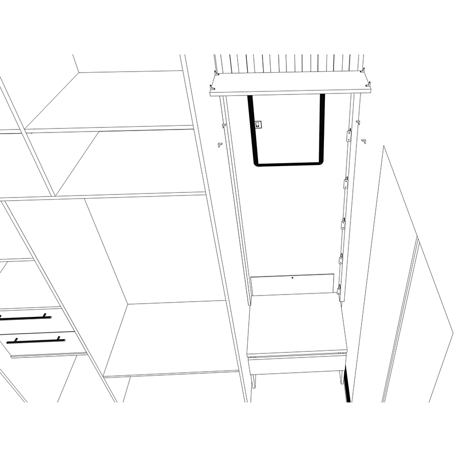 Хочу быть честным. Единственный спорный момент в этой конструкции — полки над крючками. Я бы не стал их делать, но Екатерина настояла. Нижняя полка должна быть съемной (для доступа к люку), и мне пришлось использовать металлические полкодержатели. К сожалению, их видно, и это немного портит идеальный вид открытой секции. Но функционал здесь победил дизайн.
