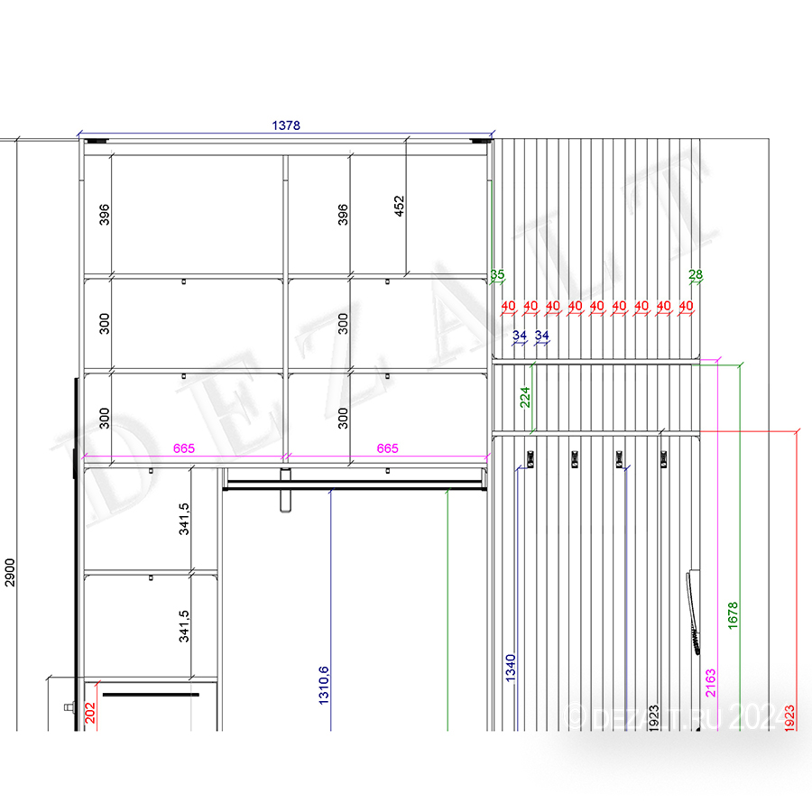 Главная сложность — высота до натяжного потолка 2900 мм. Стандартный лист ЛДСП, из которого мы делаем мебель, имеет длину максимум 2800мм (а без учета чернового края — рабочая зона всего 2760мм).