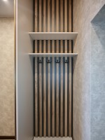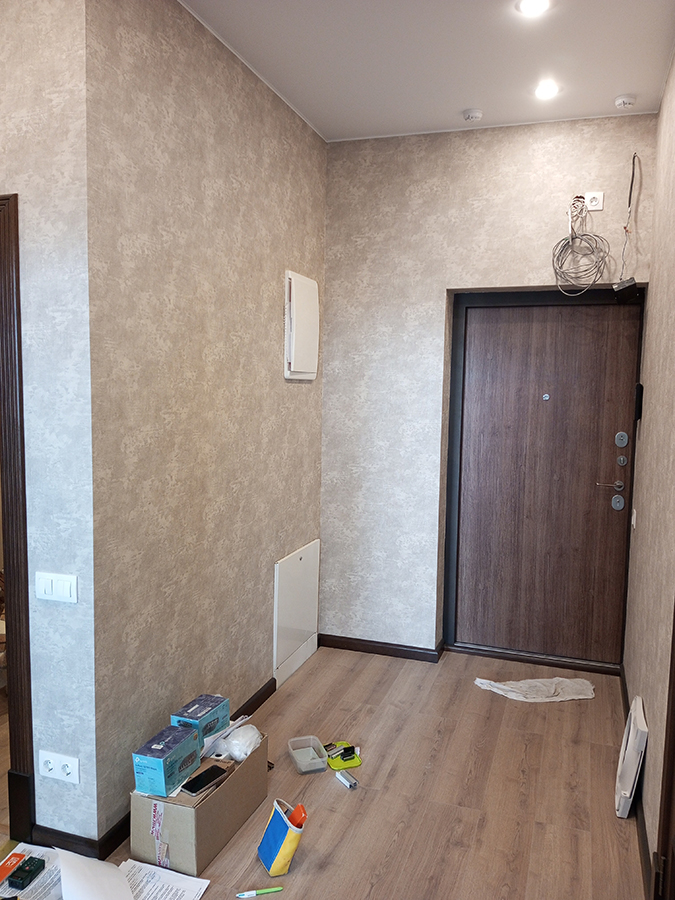 Заказчица Екатерина поставила передо мной непростую задачу: нужно закрыть электрический и водяной щиты в стене прихожей так, чтобы они были скрыты, но к ним оставался быстрый доступ. Мне пришлось поломать голову, прежде чем мы с клиенткой пришли к общему знаменателю.
